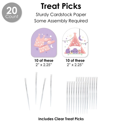 - Treat Picks Includes 20 Shaped Cut-Outs With 2 Designs – 10 Count Each, Clear Treat Picks, and Assembly Stickers