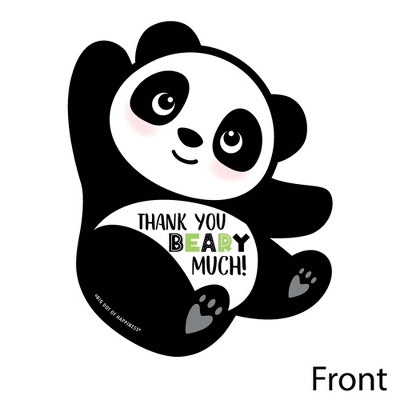 Shaped Thank You Cards Set INCLUDES 12 Party Like a Panda Bear baby shower or birthday party thank you cards and 12 premium white envelopes. Party Like a Panda Bear Shaped Thank You Cards are the perfect end to any event. Panda bear party thank you note cards SIZE 5 inches by 6.5 inches. The included envelopes measure to fit 5 inches by 7 inches cards. The back of each Party Like a Panda Bear baby shower or birthday party thank you has space to write a personal message of thanks. PREMIUM PARTY THANK YOU CARDS: Party Like a Panda Bear party thank you cards are professionally printed on heavy-duty cardstock paper with a photo-like shine. They are individually inspected, then carefully packaged with our exclusive squiggle flap envelopes, making this Party Like a Panda Bear stationary set a must-have for any baby shower or birthday party. MADE IN THE USA: Party Like a Panda Bear Party Thank You Cards are designed and manufactured at our Wisconsin facility using materials that are Made in America.