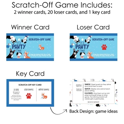 Pawty Like a Puppy Scratch-Off Cards INCLUDES 22 baby shower or birthday party game cards: 20 “loser” cards and 2 “winner” cards. FUN PARTY GAME: Pawty Like a Puppy scratch-off cards will be enjoyed by baby shower or birthday party guests of all ages. Each game card measures 2.75″ tall x 4.75″ wide. Winner and loser game cards are packaged separately so it is easy to pre-select the game winners if you choose. 3 WAYS TO PLAY: Simple – Greet guests as they arrive and hand them a scratch-off card. Quick – Display one scratch-off card at each place setting and have guests play before eating. Favorite – Give scratch-off cards out as mini prizes during other party games. The winning scratch off card(s) gets a grand prize. HIGH-QUALITY PARTY SUPPLIES: Pawty Like a Puppy Scratch-Off Cards are professionally printed on heavy-duty cardstock paper with a photo-like shine. They are individually inspected and carefully packaged by hand, with winner cards and loser cards clearly marked. This fun baby shower or birthday party game will arrive ready to use at your party. MADE IN THE USA: Pawty Like a Puppy – Baby Shower or Birthday Party Game Scratch Off Cards are designed and manufactured at our Wisconsin facility using materials that are Made in the USA.