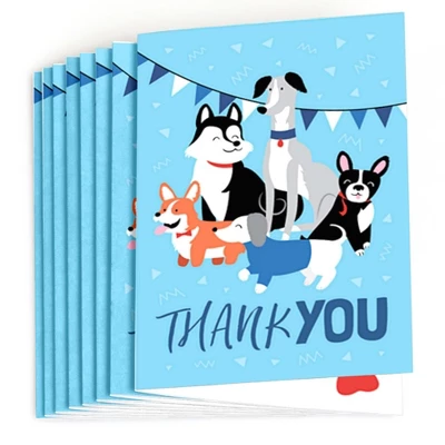 Pawty Like a Puppy Thank You Note Card Set INCLUDES 8 boy puppy party thank yous and premium white envelopes. Pawty Like a Puppy thank you notes are perfect for any event. The blue puppy theme is great for a baby shower or birthday party. Pawty Like a Puppy note cards SIZE 5.5 inches by 3.75 inches, folded. The included envelopes measure 5.75 inches by 3.75 inches. The inside of each Pawty Like a Puppy thank you card stationery has a fun graphic as well as space to write a special note to friends and family. PREMIUM THANK YOU CARDS: Pawty Like a Puppy thank you cards are professionally printed on heavy-duty card stock paper with a photo-like shine. They are hand-folded and individually inspected, then carefully packaged with our exclusive squiggle flap envelopes, making this doggie stationary set a must-have for baby shower or birthday parties. MADE IN THE USA: Pawty Like a Puppy – Baby Shower or Birthday Party Thank You Cards are designed and manufactured at our Wisconsin facility using materials that are Made in the USA.
