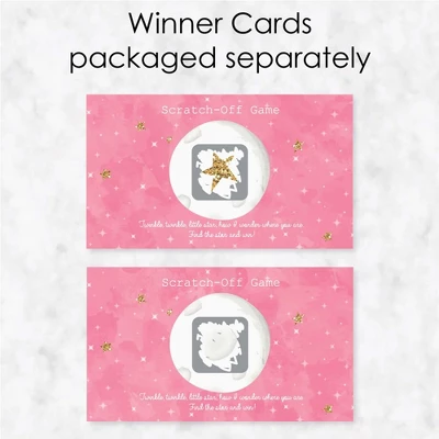 Pink Twinkle Twinkle Little Star Scratch-Off Cards INCLUDES 22 baby shower or birthday party game cards: 20 “loser” cards and 2 “winner” cards. FUN PARTY GAME: Pink Twinkle Twinkle Little Star scratch-off cards will be enjoyed by baby shower or birthday party guests of all ages. Each game card measures 2.75″ tall x 4.75″ wide. Winner and loser game cards are packaged separately so it is easy to pre-select the game winners if you choose. 3 WAYS TO PLAY: Simple – Greet guests as they arrive and hand them a scratch-off card. Quick – Display one scratch-off card at each place setting and have guests play before eating. Favorite – Give scratch-off cards out as mini prizes during other party games. The winning scratch off card(s) gets a grand prize. HIGH-QUALITY PARTY SUPPLIES: Pink Twinkle Twinkle Little Star Scratch-Off Cards are professionally printed on heavy-duty cardstock paper with a photo-like shine. They are individually inspected and carefully packaged by hand, with winner cards and loser cards clearly marked. This fun baby shower or birthday party game will arrive ready to use at your party. MADE IN THE USA: Pink Twinkle Twinkle Little Star – Baby Shower or Birthday Party Game Scratch Off Cards are designed and manufactured at our Wisconsin facility using materials that are Made in the USA. Pink Twinkle Twinkle Little Star scratch off game cards use a No-Mess Glitter Print: Our games are designed with a printed image of glitter, eliminating glitter flake while maximizing bling effect!