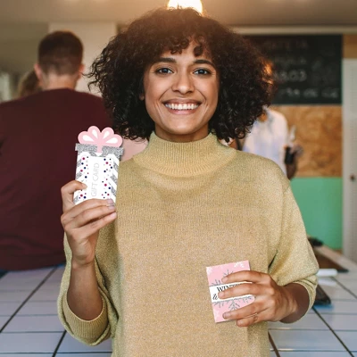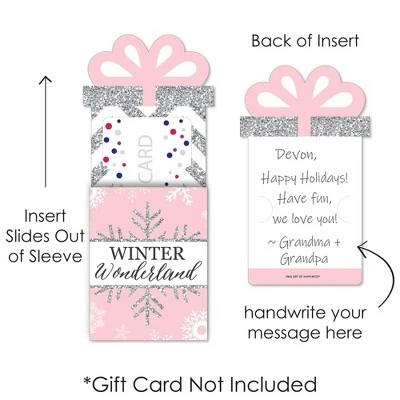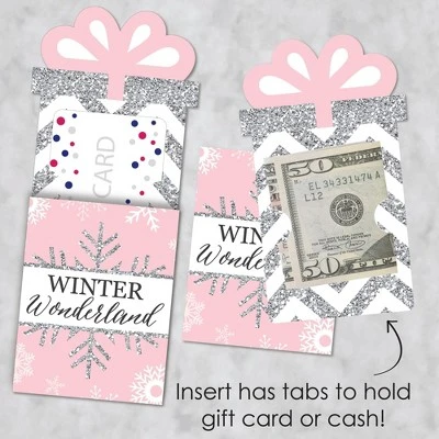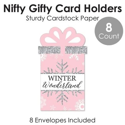 Pink Snowflake Nifty Gifty Card Holders INCLUDES 8 professionally printed gift card holders plus 8 premium white envelopes. Each card holder fits a standard gift card or cash. UNIQUE GIFT IDEA: Pink Winter Wonderland Nifty Gifty Card Holders are a trendy and fun way to give gift cards or money. In addition, each card holder insert has space for writing a personal message to your card recipients, making gift-giving convenient and easy! Whether you’re mailing a gift or attending a Snowflake Holiday Party, Winter Wedding, Baby Shower, or Birthday Party, these card holders are a great way to show how much you care! PERFECT FIT: Each Pink Snowflake Nifty Gifty Card Holder is approximately 4 inches x 5.5 inches in SIZE and fits a standard 3.5-inch x 2-inch gift card. Simply pull the insert up and out of the card holder sleeve, locate the pre-cut tabs on the insert, and place money or a gift card into the tabs. PREMIUM GIFT CARD HOLDERS: Pink Winter Wonderland Nifty Gifty Card Holders are double-sided and professionally printed on sturdy cardstock paper with a photo-like shine. They are individually inspected and carefully packaged with high-quality white envelopes, making these card holders must-haves for all your upcoming events. Gift cards not included. MADE IN THE USA: Pink Winter Wonderland Nifty Gifty Card Holders are designed and manufactured at our Wisconsin facility using materials that are Made in the USA. Pink Winter Wonderland Nifty Gifty Card Holders use a No-Mess Glitter Print: Our Card Holders are designed with a printed image of glitter, eliminating glitter flake while maximizing bling effect!