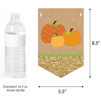 Pumpkin Patch Bunting Banner is an impressive baby shower decoration for your party. Fall Pumpkin Baby Shower Bunting Banner Decoration Kit INCLUDES: Welcome Baby letter pennants, pumpkin themed pennants, satin ribbon and non-marking wall mounts for hanging. Fall Pumpkin Baby Shower Bunting Banners SIZE: Each pennant measures 8.5 inches high x 5.5 inches wide. Ribbon measures 24 feet long and 3/8 inch wide. BABY SHOWER DECORATIONS: A Pumpkin Patch – Fall Baby Shower Bunting Banner is an easy way to decorate for your party and bring your pumpkin theme to life. Hang at the entrance of your Fall Pumpkin Baby Shower, over the food table or candy buffet, at the gift table or behind the head table. PREMIUM BABY SHOWER SUPPLIES: Pumpkin Patch Bunting Banner is professionally printed on sturdy cardstock paper. Each pennant is individually inspected then carefully packaged by hand. Fall Baby Shower bunting banners require some easy assembly. Following the number sequence on the back of each pennant, simply string the included satin ribbon through the pennant slots. Create multiple rows by cutting the ribbon to your desired length or hang as one long banner. MADE IN THE USA: Pumpkin Patch – Fall Baby Shower Bunting Banner is designed and manufactured at our Wisconsin facility using materials that are Made in the USA. Pumpkin Patch Banners use a No-Mess Glitter Print: Our banners are designed with a printed image of glitter, eliminating glitter flake while maximizing bling effect!