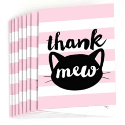 Purr-fect Kitty Cat Thank You Note Card Set INCLUDES 8 kitten party thank yous and premium white envelopes. Purr-fect Kitty Cat thank you notes are perfect for any event. The cat theme is great for a baby shower or birthday party. Purr-fect Kitty Cat note cards SIZE 5.5 inches by 3.75 inches, folded. The included envelopes measure 5.75 inches by 3.75 inches. The inside of each Purr-fect Kitty Cat thank you card stationery has a fun graphic as well as space to write a special note to friends and family. PREMIUM THANK YOU CARDS: Purr-fect Kitty Cat thank you cards are professionally printed on heavy-duty card stock paper with a photo-like shine. They are hand-folded and individually inspected, then carefully packaged with our exclusive squiggle flap envelopes, making this kitten stationary set a must-have for baby shower or birthday parties. MADE IN THE USA: Purr-fect Kitty Cat – Baby Shower or Birthday Party Thank You Cards are designed and manufactured at our Wisconsin facility using materials that are Made in the USA.