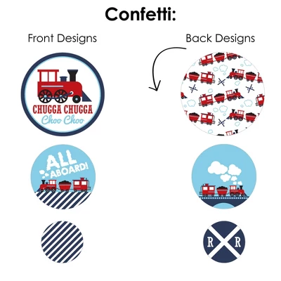 Railroad Party Crossing Terrific Table Centerpiece Kit INCLUDES 27 paper confetti and 3 fold and flare centerpieces that will look amazing at your Birthday Party or Baby Shower. Make a statement at your celebration with this easy DIY table kit! CIRCLE CONFETTI includes 27 cut-out circle shapes in three different sizes – 12 small circles size 2.75 in, 9 medium circles size 4.25 in, and 6 large circles size 5.5 in. Scatter the Steam Train themed confetti across your dessert or buffet table for an impressive addition to your decorations. FOLD AND FLARE CENTERPIECES includes 3 table decorations measure 5 inches wide (front/back) x 3 inches wide (sides) x 10.5 inches tall. These paper table decors require easy folding to flare out each centerpiece for your desired look. Simply, use a flat surface to fold along the scored creases to stand the centerpiece upright and be able to balance on its own. Both Fold and Flare Centerpieces & Confetti Are Professionally Printed Double-Sided on Sturdy Cardstock Paper MADE IN THE USA: Railroad Party Crossing Terrific Table Centerpiece Kit is designed and manufactured at our Wisconsin facility using materials that are Made in the USA.