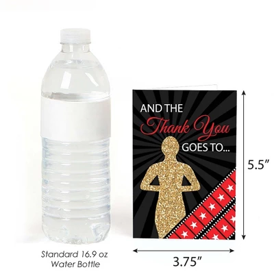 Red Carpet Hollywood Thank You Note Card Set INCLUDES 8 movie night party thank yous and premium white envelopes. Red Carpet Hollywood thank you notes are perfect for any event. The Awards night theme is great for a prom, homecoming, bachelorette or birthday party. Red Carpet Hollywood note cards SIZE 5.5 inches by 3.75 inches, folded. The included envelopes measure 5.75 inches by 3.75 inches. The inside of each Red Carpet Hollywood thank you card stationery has a fun graphic as well as space to write a special note to friends and family. PREMIUM THANK YOU CARDS: Red Carpet Hollywood thank you cards are professionally printed on heavy-duty card stock paper with a photo-like shine. They are hand-folded and individually inspected, then carefully packaged with our exclusive squiggle flap envelopes, making this movie awards stationary set a must-have for prom, homecoming, bachelorette or birthday party. MADE IN THE USA: Red Carpet Hollywood – Thank You Cards are designed and manufactured at our Wisconsin facility using materials that are Made in the USA. Awards night thank you cards use a No-Mess Glitter Print: Our thank you cards are designed with a printed image of glitter, eliminating glitter flake while maximizing bling effect!