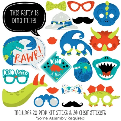 20-Piece Baby Shower or Birthday Party Photo Booth Props Kit INCLUDES 20 Roar Dinosaur photo booth props, 20 sticks and stickers for assembly. EASY ASSEMBLY: Simply attach the printed DIY photo booth props to the sticks with included reinforcing stickers. PERFECT FOR ANY CROWD! Photo booth props are fun baby shower or birthday party supplies for adults and kids – everyone will love the funny faces on these Roar Dinosaur baby shower or birthday party photo booth props. Take entertaining and shareable party photos of your friends and family while making memories with these funny photo booth props! BABY SHOWER OR BIRTHDAY PARTY DECORATIONS: There are many fun ways to use these cute photo booth props! Use as intended at home, school or work and take party photos to share; add them to vases and floral arrangements as a fun little dinosaur centerpiece; or accent your prehistoric dinosaur candy buffet by displaying them in apothecary candy jars! HIGH-QUALITY PARTY SUPPLIES: Roar Dinosaur baby shower or birthday photo booth props are professionally printed on thick cardstock paper. They will arrive cut out and ready to assemble with the included sticks and stickers. MADE IN THE USA: Roar Dinosaur – Birthday Party or Baby Shower Photo Booth Props Kit is designed and manufactured at our Wisconsin facility using materials that are Made in America.