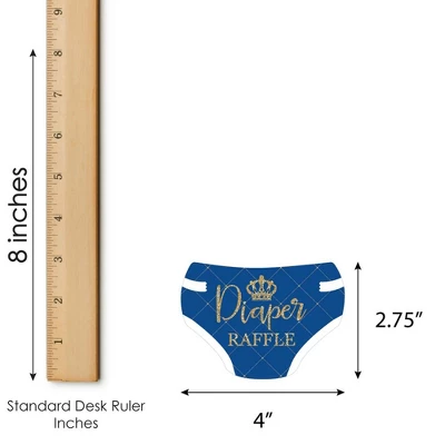 Royal Prince Charming – Diaper Shaped Raffle Ticket Inserts INCLUDES 24 cards with instructions for a diaper raffle game and space for guests to write their name. FUN BABY SHOWER GAME: Baby Shower guests will love playing a diaper raffle – it’s easy to do and helps Mommy-to-Be stock up on diapers before her baby arrives. Diaper raffle tickets are a great addition to any baby shower invitations. Add them to invites for traditional baby shower or a baby sprinkle, give them to Dad’s friends for a diaper party or host an event with coworkers. HOW TO PLAY: Add a Diaper Raffle Ticket to each baby shower invitation, telling guests to bring one package of diapers and the Diaper Raffle Ticket with their name on it. At the shower, have a basket at the gift table and have guests to drop their Diaper Raffle Tickets into it. Have a drawing for the prize winner. You can have one grand prize winner or numerous little ones. Either way, a diaper raffle is a fun way to get everyone in on the games and an easy way to get the parents ready for baby! HIGH-QUALITY PARTY SUPPLIES: Diaper Shaped Raffle Ticket Inserts are professionally printed on heavy-duty cardstock paper with a photo-like shine. They are individually inspected and carefully packaged by hand. This fun baby shower or gender reveal party game will arrive ready to use at your party. Each diaper shaped raffle ticket measures 4″ wide x 2.75″ tall. MADE IN THE USA: Royal Prince Charming – Diaper Shaped Raffle Ticket Inserts – Baby Shower Game is designed and manufactured at our Wisconsin facility using materials that are Made in the USA. Our diaper raffle game cards use a No-Mess Glitter Print: Our games are designed with a printed image of glitter, eliminating glitter flake while maximizing bling effect!