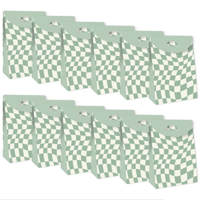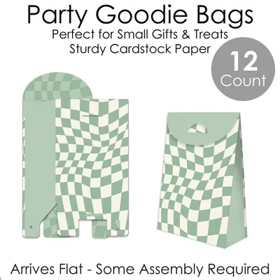 Sage Green Checkered Party Goodie Bag INCLUDES 12 gift favor bags that are perfect for a Bridal Shower, Wedding Shower or Birthday Party. Each bag SIZE measures 4.75” length x 2.5” wide x 7” tall. Party Goodie Bags are excellent for small gifts, treats, and other party favors. FANTASTIC FAVORS: Gather all the goodies to place inside these fun gift bags! Fill the party goodie bags with an assortment of gifts like bite-sized candies, small toys, trinkets, and thank you party favors! Delight your guests when you surprise them with these Checker swag bags. EASY ASSEMBLY: Party goodie bags will arrive flat. Each favor bag includes creased lines and numbered tabs for easy folding. To close each bag, fold over the top flap and secure it by inserting the tab inside the slit. Packaging will also include assembly instructions. HIGH-QUALITY SUPPLY: Sage Green and White Party Goodie Bags are professionally printed double-sided on heavy-duty cardstock paper with a photo-like shine. They are individually inspected and then carefully packaged by hand. MADE IN THE USA: Sage Green Checkered Party Goodie Bags are designed and manufactured at our Wisconsin facility using materials that are Made in the USA.
