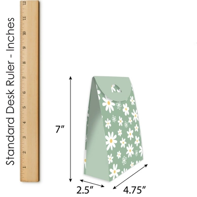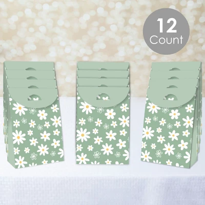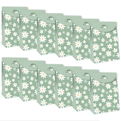 Sage Green Daisy Flowers Party Goodie Bag INCLUDES 12 gift favor bags that are perfect for a Floral Party. Each bag SIZE measures 4.75″ length x 2.5″ wide x 7″ tall. Party Goodie Bags are excellent for small gifts, treats, and other party favors. FANTASTIC FAVORS: Gather all the goodies to place inside these fun gift bags! Fill the party goodie bags with an assortment of gifts like bite-sized candies, small toys, trinkets, and thank you party favors! Delight your guests when you surprise them with these Boho Floral swag bags. EASY ASSEMBLY: Party goodie bags will arrive flat. Each favor bag includes creased lines and numbered tabs for easy folding. To close each bag, fold over the top flap and secure it by inserting the tab inside the slit. Packaging will also include assembly instructions. HIGH-QUALITY SUPPLY: Pastel Daisy Party Goodie Bags are professionally printed double-sided on heavy-duty cardstock paper with a photo-like shine. They are individually inspected and then carefully packaged by hand. MADE IN THE USA: Sage Green Daisy Flowers Party Goodie Bags are designed and manufactured at our Wisconsin facility using materials that are Made in the USA.