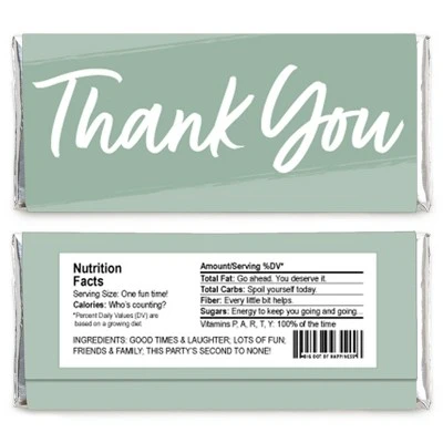 Sage Green Elegantly Simple Standard Candy Bar Wrapper Kit INCLUDES 24 chocolate bar wrappers and 24 foils, perfect for styling an adorable Light Green candy buffet or unique guest favors. Sage Green Elegantly Simple candy bar wrappers MEASURE 5.25 inches wide x 6.25 inches high and will quickly add the Sage Green Elegantly Simple party theme to all your sweet treats. It is easy to wrap chocolate standard sized candy bars with these Green paper wrappers and foils! EASY PARTY DECORATIONS: Decorated Sage Green Elegantly Simple candy bars are an easy Baby or Bridal Shower, Anniversary, Retirement, or Birthday Party favor to gift all your guests. Set a decorated candy bar at each place setting, package in small gift bags as a party favor or display in a pretty bowl at your candy buffet. Get creative with your Powder Green DIY decoration ideas! PREMIUM PARTY SUPPLIES: Sage Green Elegantly Simple chocolate candy bar wrappers are professionally printed on premium grade paper with a photo-like shine. They are individually inspected and carefully packaged by hand with silver foil wraps. Follow the included instructions to quickly wrap a foil around each chocolate candy bar and then add the printed paper wrapper, securing with tape. MADE IN THE USA: Sage Green Elegantly Simple Candy Bar Wrapper Party Favors are designed and manufactured at our Wisconsin facility using materials that are Made in the USA. Please Note: Candy bars are not included but are available at your local grocery store. Candy bar wrappers will fit standard 1.55 oz chocolate bars.