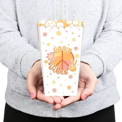 Stay Groovy Favor Popcorn Treat Boxes INCLUDES 12 Stay Groovy – Boho Hippie Party favor boxes. Stay Groovy treat boxes are perfect for any event. The Retro theme is great for a Boho Hippie Party. Stay Groovy party favor popcorn treat boxes SIZE 5.75 inches tall x 3.5 inches square at the top. The unique design and large size makes these 12 Pastel popcorn boxes a must-have for any Boho Hippie Party. POPCORN BOX PARTY SUPPLIES: Stay Groovy popcorn boxes will hold a variety of party food. Fill them with sweet treats or salty snacks. Popcorn, caramel corn, candies, and other goodies will look amazing on your candy buffet with these Boho Hippie Party favor boxes. PREMIUM PARTY FAVOR BOXES: Stay Groovy party treat boxes are professionally printed on heavy-duty cardstock paper with a photo-like shine. They are hand-folded and individually inspected, then carefully packaged. Popcorn boxes will arrive flat. Easy assembly is required. MADE IN AMERICA: Stay Groovy Boho Hippie Party Favor Popcorn Treat Boxes are designed and manufactured at our Wisconsin facility using materials that are Made in America.