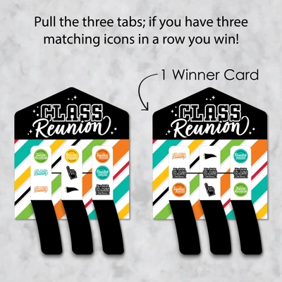 Still Got Class Pull Tabs 3-in-a-Row INCLUDES 12 pull tab game cards with 1 winning card and 11 losing cards. Great for a High School Reunion Party, these game cards are for entertainment purposes only. FUN FOR ALL: The Still Got Class 3-in-a-Row pickle cards can be played by everyone. It’s the perfect way to add excitement to your event! Prize is determined by the event host. HOW TO PLAY: Hand out one Pull Tab Game Card to each player. Players will then pull each tab open along the perforated lines. If there are three matching icons in a row, the player wins! HIGH-QUALITY: Still Got Class Pull Tabs 3-in-a-Row Cards are professionally printed double-sided on sturdy cardstock paper with a photo-like shine. They are individually inspected and carefully packaged by hand. MADE IN THE USA: Still Got Class Pull Tabs 3-in-a-Row is designed and manufactured at our Wisconsin facility using materials that are Made in the USA.