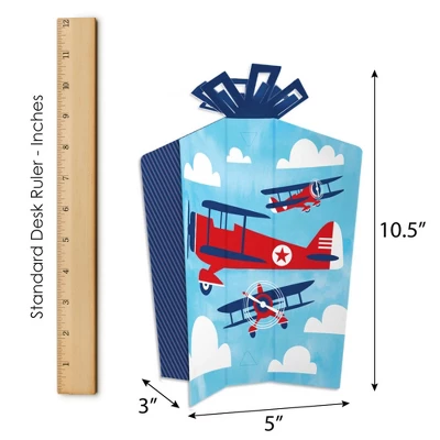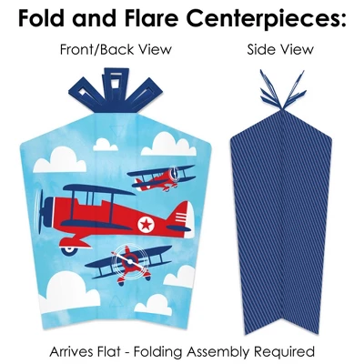 Taking Flight – Airplane Terrific Table Centerpiece Kit INCLUDES 27 paper confetti and 3 fold and flare centerpieces that will look amazing at your Birthday Party or Baby Shower. Make a statement at your celebration with this easy DIY table kit! CIRCLE CONFETTI includes 27 cut-out circle shapes in three different sizes – 12 small circles size 2.75 in, 9 medium circles size 4.25 in, and 6 large circles size 5.5 in. Scatter the Vintage Plane themed confetti across your dessert or buffet table for an impressive addition to your decorations. FOLD AND FLARE CENTERPIECES includes 3 table decorations measure 5 inches wide (front/back) x 3 inches wide (sides) x 10.5 inches tall. These paper table decors require easy folding to flare out each centerpiece for your desired look. Simply, use a flat surface to fold along the scored creases to stand the centerpiece upright and be able to balance on its own. Both Fold and Flare Centerpieces & Confetti Are Professionally Printed Double-Sided on Sturdy Cardstock Paper MADE IN THE USA: Taking Flight – Airplane Terrific Table Centerpiece Kit is designed and manufactured at our Wisconsin facility using materials that are Made in the USA.