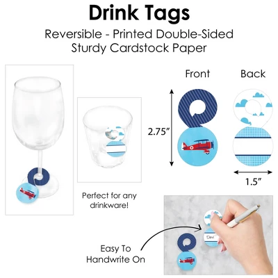- Drink Tags: Includes 8 reversible paper drink charms that measure 1.5” wide by 2.75” tall.