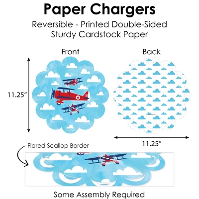 - Paper Chargers: Includes 8 reversible round table decorations – 11.25” in diameter.