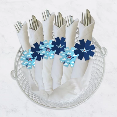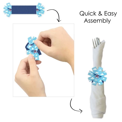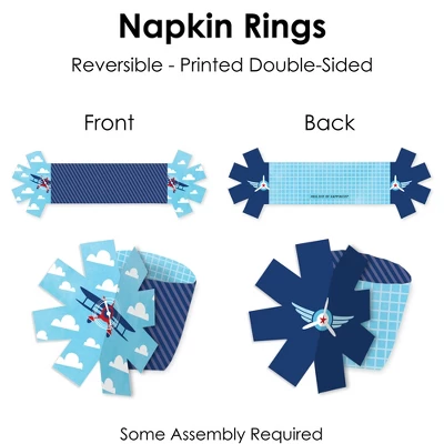 Taking Flight – Airplane Napkin Rings includes 24 paper napkin rings with an interlocking tassel-shaped end. Wrap your napkins and cutlery in these paper rings for an elevated look at your Birthday Party or Baby Shower. Tableware Accent: Taking Flight – Airplane rings will add a festive flare to your napkins, table linens, and cutlery. From large banquets to small gatherings with loved ones, these napkin rings have that extra charm for a next-level table setup. Easy DIY: Vintage Plane Themed napkin holders are a no-fuss solution for your table setting decor and require quick and easy assembly. Start by forming the napkin ring into a circle and attach the tassels by interlocking the slits. Slide the tassels together until the art matches up and insert your napkin and dinnerware. High-Quality Supply: Taking Flight – Airplane Napkin Rings are reversible and professionally printed double-sided on sturdy cardstock paper with a photo-like shine. Each paper rings measure 2.25” wide x 2.25” tall when assembled. Napkin Rings arrive flat and will require some easy assembly. Made In The USA: Taking Flight – Airplane Napkin Rings are designed and manufactured at our Wisconsin facility using materials that are Made in the USA.