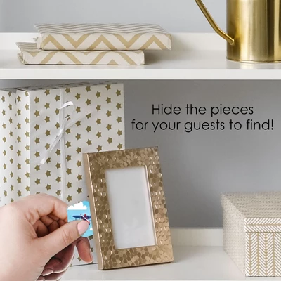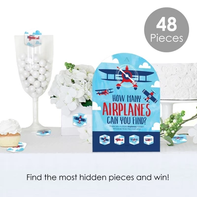 Taking Flight Airplane Hide and Find Game INCLUDES 1 sign with a built-in stand and 48 hexagon game pieces that you can hide for an exhilarating scavenger hunt at your Baby Shower or Birthday Party. Easy Assembly: Taking Flight Airplane game sign comes with built-in stand and requires some easy DIY assembly. To display your sign, fold the sides of the stand towards the center. Then, fold down the support piece of the stand until it rests in the notches. How To Play: Hide and find game sign shows the design of each hexagon piece, so display on a table where everyone can see. Then, find creative places to hide the game pieces around your venue. Finally, send your guests to hunt for the pieces. Whoever finds the most pieces wins! For a twist, divide the guests into teams and assign each team a piece to hunt for. High-Quality Supply: Vintage Plane Hide and Find Game is professionally printed double-sided on heavy-duty cardstock paper with a photo-like shine. Sign measures 7.5” wide by 11” tall and hexagon pieces measure 2.25” wide by 2.25” tall. Made In The USA: Taking Flight Airplane Hide and Find Game is designed and manufactured at our Wisconsin facility using materials that are Made in the USA.