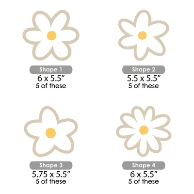 Big Dot of Happiness Tan Daisy Flowers DIY Party Essential Kit INCLUDES 20 Boho Floral cut outs – Great for bringing all your DIY Floral Party ideas to life! DIY PARTY SUPPLIES: Tan Daisy Flowers essentials include 20 cut outs in 4 different shapes that coordinate with the Pastel Daisy theme. Set of 20 Boho Floral shapes SIZE 5 – Shape 1 (6″ x 5.5″), 5 – Shape 2 (5.5″ x 5.5″), 5 – Shape 3 (5.75″ x 5.5″), and 5 – Shape 4 (6″ x 5.5″). The unique design and size makes these party decorations an impressive addition to any Floral Party. PASTEL DAISY DECORATIONS: Tan Daisy Flowers DIY party essentials are printed on both sides, so they are perfect for centerpieces or hanging decorations. Hole-punch them and string together as a Floral Party banner or hang individually as ceiling decorations. Tan Daisy Flowers shaped cut outs will make a statement however you choose to use them. HIGH-QUALITY PARTY SUPPLIES: Tan Daisy Flowers DIY Party essentials are professionally printed on heavy-duty card stock paper with a photo-like shine. They are individually inspected and carefully packaged by hand. Floral Party essentials will arrive ready to use in all your creative DIY party ideas! MADE IN THE USA: Tan Daisy Flowers Decorations DIY Floral Party Essentials are designed and manufactured at our Wisconsin facility using materials that are Made in America.