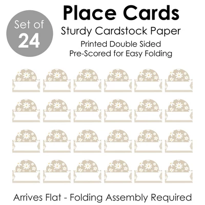 Tan Daisy Flowers Place Cards INCLUDES 24 individual cards that measure 3.5″ wide x 2.5″ tall when assembled. Easy to use, these tabletop accents are perfect to use at your next Floral Party. VERSATILE IN USE: Whether it’s a small party or large gathering, the Boho Floral Place Cards can be used in a variety of ways. Handwrite words in the blank space and then set them on the buffet table, as part of a place setting, or consider using them for an icebreaker activity. EYE-CATCHING DESIGN: Featuring crisp graphics with an innovative cut design, Tan Daisy Flowers Place Cards will easily draw in attention without taking up too much space. To assemble, push back the top outer edge, revealing the half-circle top. Fold along the pre-scored line in the center to create the tent shape, and then display! HIGH-QUALITY: Pastel Daisy Place Cards are professionally printed double-sided on sturdy cardstock paper with a photo-like shine. They are individually inspected and carefully packaged by hand. Place Cards will arrive flat with some folding assembly required. MADE IN THE USA: Tan Daisy Flowers Place Cards are designed and manufactured at our Wisconsin facility using materials that are Made in the USA.