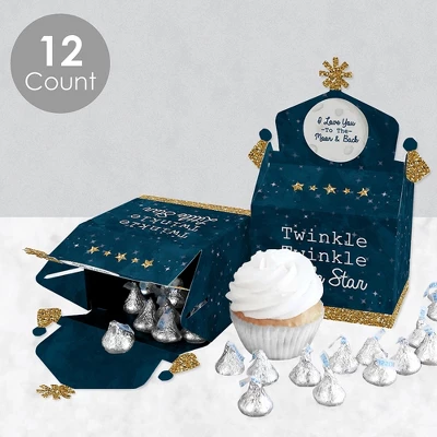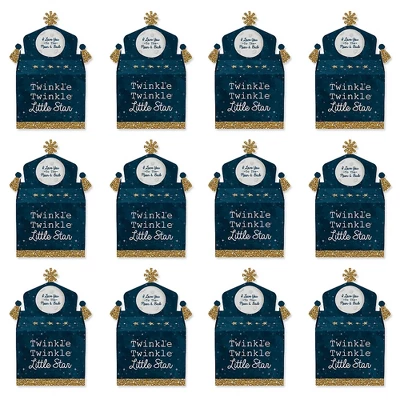 Gable Boxes INCLUDE: 12 Twinkle Twinkle Little Star-themed goodie party favor boxes. Each box SIZE measures 4.25 inches length x 3 inches width x 7.75 inches height. Gable favor boxes are ideal for small gifts and treats that are under 3.5 inches tall (height for storing items in closed box). FUN PARTY FAVORS: Use gable boxes for a unique party gift at any celebration party. This small, closed favor box can be filled with baked goodies, party trinkets, or thank you gifts. Party guests will have fun with the mystery of what each party loot box will contain. PREMIUM PARTY SUPPLY: Gable treat boxes are professionally printed and double-sided on heavy-duty cardstock paper, with a photo-like shine. They are hand-folded, individually inspected, and then carefully packaged. SIMPLE ASSEMBLY: Twinkle Twinkle Little Star gable boxes will arrive flat. Allow time for the required assembly of each box. Gable boxes have crease lines and numbered tabs for easy folding. Packaging will include assembly instructions. MADE IN THE USA: Twinkle Twinkle Little Star Baby Shower or Birthday Party goodie gable boxes are designed and manufactured at our Wisconsin facility using materials that are Made in the USA. Twinkle Twinkle Little Star goodie gable boxes use a No-Mess Glitter Print: Our DIY party decorations are designed with a printed image of glitter, eliminating glitter flake while maximizing bling effect!