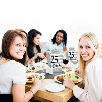 We Still Do – 25th Wedding Anniversary Fold and Flare Centerpieces INCLUDE: 10 heavy-duty paper centerpieces in our We Still Do – 25th Wedding Anniversary theme. Each centerpiece has art on all four sides and starburst top for an impressive display. Some simple folding assembly required. EASY TABLE DECOR: Each We Still Do – 25th Wedding Anniversary centerpiece SIZE 5 inches wide (front/back) x 3 inches wide (sides) x 10.5 inches tall. This 10 count table decorations set requires easy folding to flare out each centerpiece at your desired look. Easy DIY folding assembly: Use a flat surface to fold along the scored creases to stand the centerpiece upright and be able to balance on its own. PARTY CENTERPIECES: Style your anniversary party with We Still Do – 25th Wedding Anniversary table centerpiece decorations. Place in the center of multiple tables or add to all areas of the party such as welcome entrance, gift table, or dessert buffet for an extra flair. HIGH-QUALITY PARTY SUPPLIES: We Still Do – 25th Wedding Anniversary fold and flare centerpieces are professionally printed double-sided on sturdy cardstock paper with a photo-like shine. They are individually inspected and carefully packaged by hand. Fold and flare centerpieces will arrive flat, with easy folding required for quick assembly. MADE IN THE USA: We Still Do – 25th Wedding Anniversary fold and flare centerpieces are designed and manufactured at our Wisconsin facility using materials that are Made in the USA. We Still Do – 25th Wedding Anniversary table centerpieces use a No-Mess Glitter Print: Our table decorations are designed with a printed image of glitter, eliminating glitter flake while maximizing bling effect!