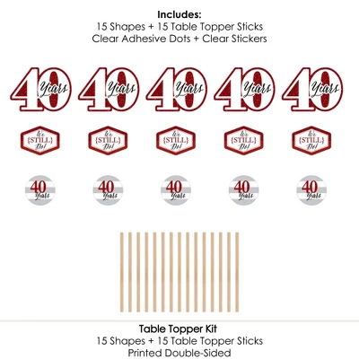 We Still Do – 40th Wedding Anniversary Centerpiece Sticks INCLUDES 15 We Still Do – 40th Wedding Anniversary table toppers in three different shapes, 15 sticks and stickers for easy assembly. 40th anniversary party table decorations are perfect for an anniversary party. We Still Do – 40th Wedding Anniversary Party Centerpiece Sticks SIZE five 40 table toppers, 11″ wide x 8″ tall; five Circle table toppers, 5.5″ wide x 5.5″ tall; and five We Still Do! table toppers, 7″ wide x 5.25″ tall. The unique design and variety of pieces makes this table decoration kit an impressive addition to any ruby theme party. EASY PARTY DECOR: 40th Anniversary table decorations can be used as centerpieces when attached to the included sticks and inserted into vases or floral arrangements. They easily accent your anniversary party candy buffet when you add them to apothecary jars. Table toppers are also a great addition to any photo booth. The large shaped cut outs will make your party pics instantly shareable. 40th Wedding Anniversary centerpiece sticks are sure to make a statement however you choose to use them! PREMIUM PARTY SUPPLIES: We Still Do – 40th Wedding Anniversary party table toppers are professionally printed on heavy-duty cardstock paper with a photo-like shine. They are individually inspected and carefully packaged by hand with sticks and stickers for easy assembly. Get creative with your DIY party ideas! MADE IN THE USA: We Still Do – 40th Wedding Anniversary Party Centerpiece Sticks are designed and manufactured at our Wisconsin facility using materials that are Made in America. We Still Do – 40th Wedding Anniversary decoration kit uses a No-Mess Glitter Print: Our decor kit is designed with a printed image of glitter, eliminating glitter flake while maximizing bling effect!