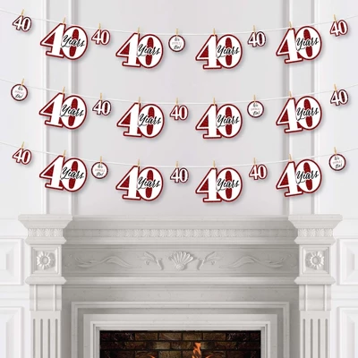 Clothespin Garland Banner – 44 Pieces INCLUDE: 24 small shaped cut-outs, 20 large shaped cut-outs, 50 mini clothespins, and 10 yards white 2mm satin cord. Some simple assembly required. DIY PARTY SUPPLIES: We Still Do – 40th Wedding Anniversary small paper shaped cut-out SIZE 16 40 (2.5 inches x 2 inches), 8 We Still Do! (2.25 inches x 2.25 inches). We Still Do – 40th Wedding Anniversary large paper shaped cut-outs SIZE 20 40 (7 inches x 5 inches). EASY PARTY DECOR: Style any anniversary party with We Still Do – 40th Wedding Anniversary clothespin garland banner. Before hanging, plan out your desired pattern by alternating in sizes. Using a miniature clothespin, clip shapes on the included cord. Hang finished DIY garland banner at the entrance of your party, over mantelpiece, along buffet tables as banner decoration. After the party, reuse the clothespins and cord to hang event photos as a fun keepsake. PREMIUM PARTY DECORATION: We Still Do – 40th Wedding Anniversary large cut-outs are professionally printed double-sided. Small cut-outs are professionally printed with coordinating pattern on back, and all on sturdy cardstock paper with a photo-like shine. They are then individually cut, inspected and carefully packaged. We Still Do – 40th Wedding Anniversary clothespin garland banner is a 44-piece DIY kit that can be used in many ways. MADE IN THE USA: We Still Do – 40th Wedding Anniversary clothespin garland banner decoration kit is designed and manufactured at our Wisconsin facility using materials that are Made in the USA. We Still Do – 40th Wedding Anniversary DIY garland banner use a No-Mess Glitter Print: Our DIY party decorations are designed with a printed image of glitter, eliminating glitter flake while maximizing bling effect!