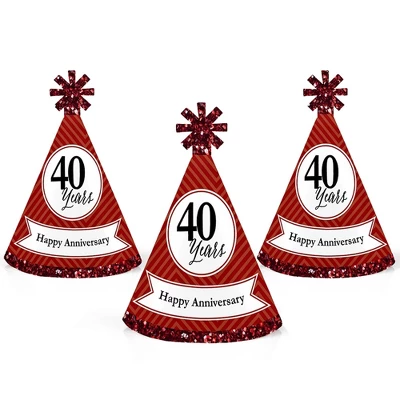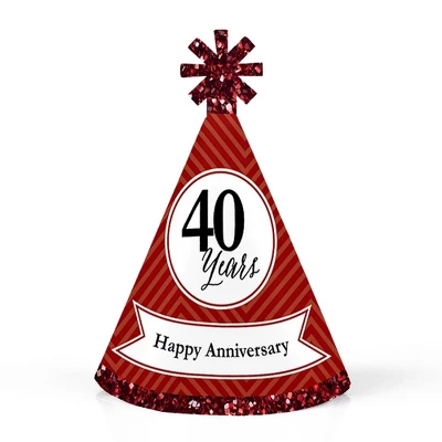 40th Wedding Anniversary Mini Party Hats INCLUDES 8 mini hats and 8 elastic chin straps. Mini wedding anniversary party hats will fit adults. Some assembly required. 8 – 40th Wedding Anniversary party hats SIZE 4.75 inches tall and 3.25 inches in diameter at the base. The included elastic chin straps measure 12 inches long. These cute ruby anniversary party accessories feature a unique star cut-out decoration at the top and the printed saying “Happy Anniversary!”. FUN ANNIVERSARY PARTY ACCESSORIES: 40th Wedding Anniversary mini party hats are perfect for your ruby anniversary party. This set of cute tiny party hats will help you take adorable wedding anniversary photos. Little party hats are sure to be enjoyed by all your friends and family! PREMIUM MINI PARTY HATS: Set of 8 40th Wedding Anniversary mini party hats are professionally printed on heavy-duty card stock paper with a photo-like shine. They are individually inspected, then carefully packaged. 40th Anniversary mini cone wedding anniversary party hats will arrive flat. Easy assembly is required. Simply roll the party hat into a cone shape, slide the tab into the slot to secure cone shape, and then attach the elastic strap. MADE IN THE USA: We Still Do – 40th Wedding Anniversary – Mini Cone Anniversary Party Hats are designed and manufactured at our Wisconsin facility using materials that are Made in the USA. 40th Wedding Anniversary Mini Cone Party Hats use a No-Mess Glitter Print: Our small cone party hats are designed with a printed image of glitter, eliminating glitter flake while maximizing bling effect! *Adult Use Only. Not for children under 13 yrs. This is not a toy. Not intended for children’s use.