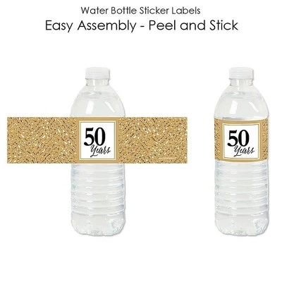 We Still Do – 50th Wedding Anniversary Water Bottle Sticker Labels INCLUDES 20 DIY water bottle labels. We Still Do – 50th Wedding Anniversary DIY party supplies are perfect for quickly dressing up any beverage bottle in your party theme. Water bottle stickers each SIZE 8.5″ wide x 2″ tall, perfect for any beverage bottle or container less than 8.5″ in diameter. EASY TO USE: Prepare your water bottles or containers by ensuring they are room temperature and dry. Removing the original bottle label is preferred but not necessary. Carefully peel one 50th anniversary sticker label from the backing and adhere to a bottle, starting at the middle and pressing toward edge. Smooth label around container and chill your beverages if needed. HIGH QUALITY PARTY SUPPLIES: We Still Do – 50th Wedding Anniversary water bottle labels are professionally printed on a sticker paper with a glossy coating. They are waterproof and can be used on beverages that will be chilled, just be sure to apply prior to chilling. Add them to a fiftieth anniversary party beverage bar for an impressive, coordinated display. UNIQUE BEVERAGE BAR: We Still Do – 50th Wedding Anniversary Water Bottle Labels will make coordinated beverage area at your anniversary party. Add We Still Do – 50th Wedding Anniversary Water Bottle Labels to standard water bottles, mini water bottles, soda bottles and single-serving juice containers. Water bottle labels can also be used on cylinder containers to create We Still Do – 50th Wedding Anniversary centerpieces. MADE IN THE USA: We Still Do – 50th Wedding Anniversary – Party Water Bottle Sticker Labels are designed and manufactured at our Wisconsin facility using materials that are Made in the USA. Please Note: Beverages in image are not included. Water Bottle Labels No-Mess Glitter Print: Our beverage labels are designed with a printed image of glitter, eliminating glitter flake while maximizing bling effect!