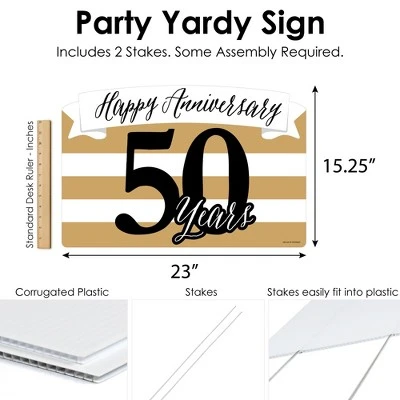 We Still Do – 50th Wedding Anniversary Party Yardy Sign INCLUDES 1 weather resistant plastic sign and 2 sturdy stakes for displaying. Create goose bump moments, those memories to last a lifetime, when you display Happy Anniversary yard sign with stakes. OUTDOOR LAWN DECOR: This Anniversary yard sign lawn decoration MEASURES 23 inches wide x 15.25 inches tall. The perfect size to stake into the ground, creating an eye-catching display at your home, business, or party venue. If displayed outdoors, yard sign rules and regulations vary from city and state, we recommend checking your local guidelines. EASY TO USE YARD SIGN: We Still Do – 50th Wedding Anniversary outdoor yard sign is professionally printed and cut, making assembly quick and easy. Simply insert two heavy-duty stakes into We Still Do – 50th Wedding Anniversary yard ornament and press firmly into the ground to display. Easy assembly instructions are included. HIGH-QUALITY YARD DECORATION: We Still Do – 50th Wedding Anniversary yard sign decoration is professionally printed on durable, corrugated plastic. We Still Do – 50th Wedding Anniversary Yard Sign Lawn Decoration is waterproof and can be used outdoors – displayed in wind, snow, and rain without any worry. MADE IN THE USA: We Still Do – 50th Wedding Anniversary yard sign is designed and manufactured at our Wisconsin facility using materials that are Made in the USA. We Still Do – 50th Wedding Anniversary lawn decor uses a No-Mess Glitter Print: Our yard party decorations are designed with a printed image of glitter, eliminating glitter flake while maximizing bling effect! If displayed outdoors, yard sign rules and regulations vary from city and state, we recommend checking your local guidelines.