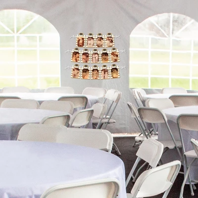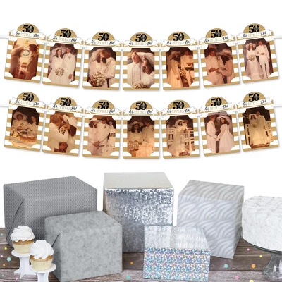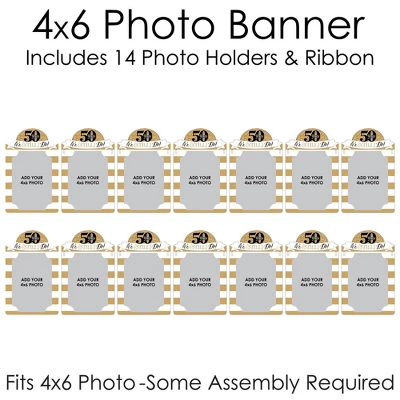 We Still Do – 50th Wedding Anniversary Photo Banner INCLUDES 14 sturdy and professionally printed photo holders and ribbon for DIY hanging. Each photo holder has pre-cut tabs to display your 4×6 photos vertically. Some assembly required. DIY PICTURE BANNER: Put the guest of honor in the spotlight when you feature a Picture Display. Each photo holder has two slots to string the included ribbon through and 4 pre-cut slits to tab your 4×6 photos vertically in place. Bonus: We Still Do – 50th Wedding Anniversary Photo Banner is a damage free way to display your favorite picture display. FUN PARTY DECOR: Anniversary Party DIY Photo Banner is an easy way to decorate for your party and bring your We Still Do – 50th Wedding Anniversary theme to life. Hang at the entrance of your event, over the food table or candy buffet, at the gift table, or behind the head table. PREMIUM PARTY DECORATION: We Still Do – 50th Wedding Anniversary Photo Banner is professionally printed on sturdy cardstock paper. Each photo holder is individually inspected then carefully packaged by hand. Picture Display Banner requires do-it-yourself assembly. Following the number sequence on the back of each photo holder, simply string the included satin ribbon through the slots. Create multiple rows by cutting the ribbon to your desired length or hang as one long banner. MADE IN THE USA: We Still Do – 50th Wedding Anniversary Photo Banner is designed and manufactured at our Wisconsin facility using materials that are Made in the USA. We Still Do – 50th Wedding Anniversary DIY Photo Banner uses a No-Mess Glitter Print: Our Photo Banner holders are designed with a printed image of glitter, eliminating glitter flake while maximizing bling effect!