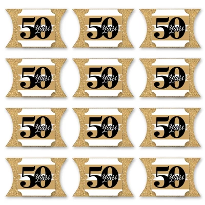 We Still Do – 50th Wedding Anniversary Large Pillow Boxes INCLUDES: 12 boxes and 12 decorative top pieces. Boxes arrive flat and require some easy assembly. These 50 Years favor gift boxes make great giveaways at your next Anniversary Party. BOX-ERRIFIC: We Still Do – 50th Wedding Anniversary Large Pillow Boxes are SIZE 7 inches long x 4.5 inches wide. Fully assembled boxes have a 1.75-inch-wide opening on both ends and are 5 inches deep for storing items inside. Made of heavy-duty, these loot favor gift boxes can be filled with wrapped treats, trinkets, or small mementos; boxes are suitable for all ages. These boxes are fun and artful, making them perfect accents at any party table setting. EASY ASSEMBLY: 50 Years Large Pillow Boxes require some assembly before use. Start by securing a top piece to a pillow box by tucking top piece under both tabs on box. Gently squeeze box open and fold ends down in numerical order. NOTE: Top pieces can be displayed horizontally or vertically on boxes. PREMIUM FAVOR BOXES: We Still Do – 50th Wedding Anniversary Large Pillow Boxes are professionally printed on heavy-duty paper with a photo-like shine. The ends have full overlapping flaps; no tape or extra materials needed. They are individually inspected and carefully packaged. Treats, trinkets, and small mementos not included. MADE IN THE USA: We Still Do – 50th Wedding Anniversary Large Pillow Boxes are designed and manufactured at our Wisconsin facility using materials that are Made in the USA. We Still Do – 50th Wedding Anniversary Large Pillow Boxes use a No-Mess Glitter Print: Our Pillow Boxes are designed with a printed image of glitter, eliminating glitter flake while maximizing bling effect!