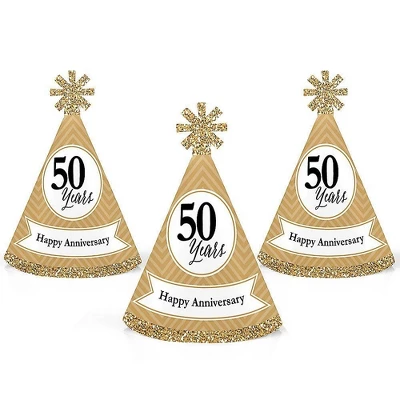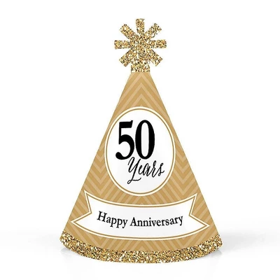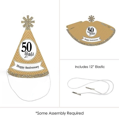 50th Wedding Anniversary Mini Party Hats INCLUDES 8 mini hats and 8 elastic chin straps. Mini wedding anniversary party hats will fit adults. Some assembly required. 8 – 50th Wedding Anniversary party hats SIZE 4.75 inches tall and 3.25 inches in diameter at the base. The included elastic chin straps measure 12 inches long. These cute gold anniversary party accessories feature a unique star cut-out decoration at the top and the printed saying “Happy Anniversary”. FUN ANNIVERSARY PARTY ACCESSORIES: 50th Wedding Anniversary mini party hats are perfect for your gold anniversary party. This set of cute tiny party hats will help you take adorable wedding anniversary photos. Little party hats are sure to be enjoyed by all your friends and family! PREMIUM MINI PARTY HATS: Set of 8 50th Wedding Anniversary mini party hats are professionally printed on heavy-duty card stock paper with a photo-like shine. They are individually inspected, then carefully packaged. 50th Wedding Anniversary mini cone wedding anniversary party hats will arrive flat. Easy assembly is required. Simply roll the party hat into a cone shape, slide the tab into the slot to secure cone shape, and then attach the elastic strap. MADE IN THE USA: We Still Do – 50th Wedding Anniversary – Mini Cone Anniversary Party Hats are designed and manufactured at our Wisconsin facility using materials that are Made in the USA. 50th Wedding Anniversary Mini Cone Party Hats use a No-Mess Glitter Print: Our small cone party hats are designed with a printed image of glitter, eliminating glitter flake while maximizing bling effect! *Adult Use Only. Not for children under 13 yrs. This is not a toy. Not intended for children’s use.