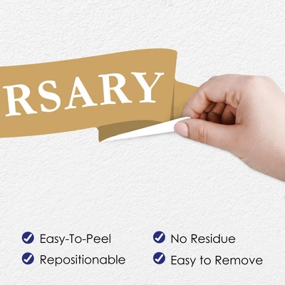 We Still Do – 50th Wedding Anniversary Wall Decals Backdrop includes 1 sheet of vinyl wall stickers that include letters and shape pieces that form the perfect Happy 50th backdrop for your Anniversary Party. Wall Decal sheet measures 50 inches wide by 16.5 inches tall. Pieces range in size from 26.5 x 5.75 inches to 2.5 x 3.5 inches. Effortless Decor: The We Still Do – 50th Wedding Anniversary stickers are an easy DIY party decoration that will make a big impact at your celebration. Stick them on a flat wall surface to create that picture-perfect setting and then grab your camera to capture all the fun. Easy to Use: We Still Do – 50th Wedding Anniversary vinyl decals are easy-to-peel and repositionable. Wall art stickers will adhere to various surfaces including painted walls, plastic, wood, glass, and metal. To use, make sure your surface is clean and dry. Slowly peel the sticker from the paper to avoid tearing and smooth over with your hand. They are also easy to remove, leaving no residue. High-Quality Supply: We Still Do – 50th Wedding Anniversary wall stickers come with a quality matte finish and vibrant colors. They are printed on water-resistant professional quality material and will arrive on one full sheet rolled. Made In The USA: We Still Do – 50th Wedding Anniversary Wall Decals are designed and manufactured at our Wisconsin facility using materials that are Made in the USA. We Still Do – 50th Wedding Anniversary Vinyl Stickers uses a No-Mess Glitter Print: Our vinyl stickers are designed with a printed image of glitter, eliminating glitter flake while maximizing bling effect!
