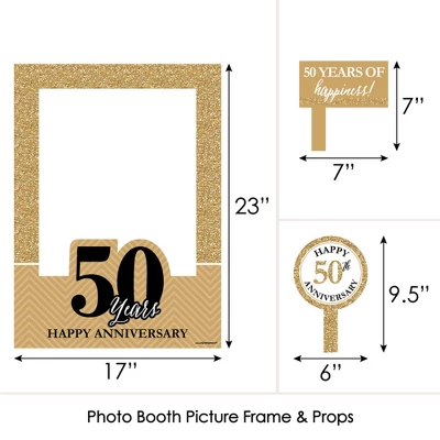 5-Piece Photo Booth Frame and Props Kit INCLUDES 1 We Still Do photo booth picture frame prop, 2 round photo booth props and 2 rectangle photo booth props – Great for a wedding anniversary. Take entertaining and shareable party photos of your friends and family while making memories with funny 50th Wedding Anniversary photo booth props! PERFECT FOR ANY CROWD! Photo booth props are fun anniversary party supplies for adults and kids – everyone will love posing with cute wedding anniversary photo booth props. Photo Frame Props Kit MEASURES 17 inches x 23 inches (Picture Frame), 6 inches x 9.5 inches, including the handle (2 Round Props) and 7 inches x 7 inches, including the handle (2 Rectangle Props). WEDDING ANNIVERSITY DECORATIONS: There are many fun ways to use these We Still Do photo booth picture frame props! Style a cute photo booth with a coordinating backdrop for perfect selfies; display photo props around your event for different photo stations; or carry them from guest to guest and be sure to take cute party pics with everyone! HIGH-QUALITY PARTY SUPPLIES: We Still Do wedding anniversary selfie photo booth props are professionally printed on durable, corrugated plastic. They will arrive cut out and ready to use. Photo Booth Picture Frame & Props are waterproof and can be used outdoors, in any weather and at any location. We Still Do photo booth props use a No-Mess Glitter Print: Our photo booth props are designed with a printed image of glitter, eliminating glitter flake while maximizing bling effect! MADE IN THE USA: We Still Do – 50th Wedding Anniversary Photo Booth Picture Frame & Props are designed and manufactured at our Wisconsin facility using materials that are Made in the USA.