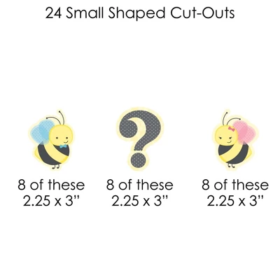 Clothespin Garland Banner – 44 Pieces INCLUDE: 24 small shaped cut-outs, 20 large shaped cut-outs, 50 mini clothespins, and 10 yards white 2mm satin cord. Some simple assembly required. DIY PARTY SUPPLIES: What Will it Bee small paper shaped cut-out SIZE 8 Blue Bee (2.25 inches x 3 inches), 8 Question (2.25 inches x 3 inches), 8 Pink Bee (2.25 inches x 3 inches). What Will it Bee large paper shaped cut-outs SIZE 20 Blue and Pink Bee (5.25 inches x 7 inches). EASY PARTY DECOR: Style any gender reveal with What Will it Bee clothespin garland banner. Before hanging, plan out your desired pattern by alternating in sizes. Using a miniature clothespin, clip shapes on the included cord. Hang finished DIY garland banner at the entrance of your party, over mantelpiece, along buffet tables as banner decoration. After the party, reuse the clothespins and cord to hang event photos as a fun keepsake. PREMIUM PARTY DECORATION: What Will it Bee large cut-outs are professionally printed double-sided. Small cut-outs are professionally printed with coordinating pattern on back, and all on sturdy cardstock paper with a photo-like shine. They are then individually cut, inspected and carefully packaged. What Will it Bee clothespin garland banner is a 44-piece DIY kit that can be used in many ways. Get inspired with this fun do-it-yourself gender reveal decor kit! MADE IN THE USA: What Will it Bee clothespin garland banner decoration kit is designed and manufactured at our Wisconsin facility using materials that are Made in the USA.