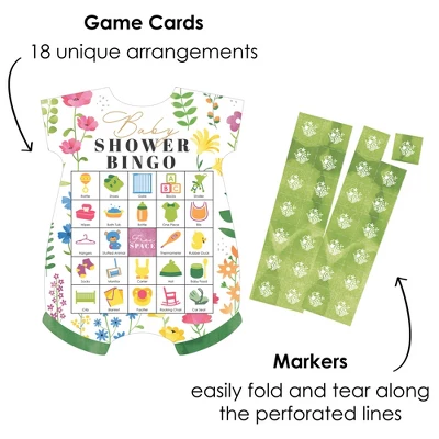 - Set Includes – 18 Baby Bodysuit-Shaped Game Cards, 18 Perforated Marker Sheets, 1 Perforated Call Sheet, and Game Instructions