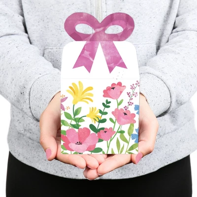 Bow Boxes INCLUDE: 12 Floral Greenery-themed square favor gift boxes. Each box SIZE measures 3.5 inches length x 3.5 inches width x 7 inches height. Bow boxes are ideal for small gifts and treats that are under 3.5 inches tall (height for storing items in closed box). When assembled and closed, each box creates a 3D paper bow-shaped top with a square bottom. CUTE GIFT BOXES: This small, closed favor box can be filled with homemade treats (fun cupcake box), party trinkets, or thank you gifts. At the party, have each guest fill their Boho Flowers bow box with snacks from a candy buffet or use as a party loot box. Guests will have fun guessing what surprise each favor gift box contains. PREMIUM PARTY SUPPLY: Bow boxes are professionally printed and double-sided on heavy-duty cardstock paper, with a photo-like shine. They are hand-folded, individually inspected, and then carefully packaged. EASY ASSEMBLY: Wildflowers bow boxes will arrive flat. Each bow box has crease lines and numbered tabs for easy folding. Finish the DIY assembly by interlocking top of box to create a three-dimensional bow. Packaging will include assembly instructions. MADE IN THE USA: Boho Floral Party bow boxes are designed and manufactured at our Wisconsin facility using materials that are Made in the USA.
