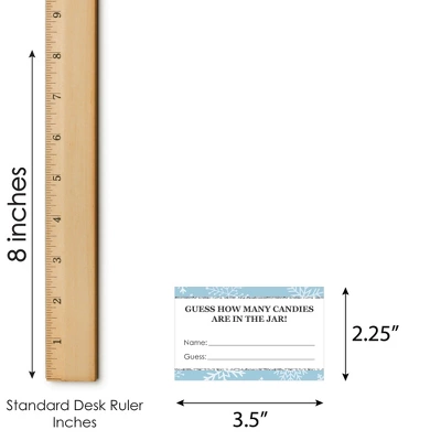 Winter Wonderland Candy Guessing Game INCLUDES 1 sign with a built-in stand and 40 guessing cards that will look great at your Winter Holiday Birthday Party or Baby Shower. Sign measures 7.5” wide by 11” tall and cards measure 3.5” by 2.25” tall. Candy and jar are not included. HOW TO PLAY: Draw attention to your candy jar with the Winter Wonderland Candy Guessing Game! Place the sign and cards next to your candy jar. Guests can then take a card and guess how many candies are in the jar. The closest guess wins! EASY ASSEMBLY: To use, fold the sides of the stand towards the center. Then, fold down the support piece of the stand until it rests in the notches. Finally, display your Blue Snowflake sign next to your container of candy. HIGH-QUALITY SUPPLY: Winter Wonderland Candy Guessing Game is professionally printed double-sided on sturdy cardstock paper with a photo-like shine. They are individually inspected and then carefully packaged by hand. Sign arrives flat with some easy assembly required. MADE IN THE USA: Winter Wonderland Candy Guessing Game is designed and manufactured at our Wisconsin facility using materials that are Made in the USA. Winter Wonderland Candy Guessing Games uses a No-Mess Glitter Print: Our signs and cards are designed with a printed image of glitter, eliminating glitter flake while maximizing bling effect!