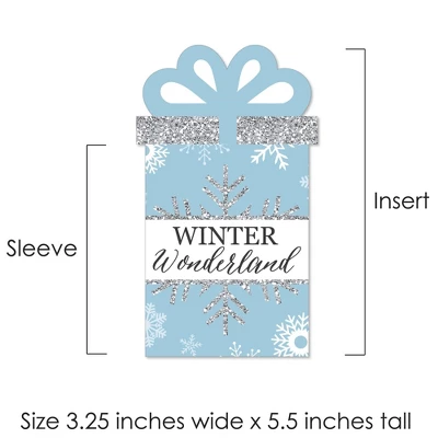 Blue Snowflake Nifty Gifty Card Holders INCLUDES 8 professionally printed gift card holders plus 8 premium white envelopes. Each card holder fits a standard gift card or cash. UNIQUE GIFT IDEA: Winter Wonderland Nifty Gifty Card Holders are a trendy and fun way to give gift cards or money. In addition, each card holder insert has space for writing a personal message to your card recipients, making gift-giving convenient and easy! Whether you’re mailing a gift or attending a Snowflake Holiday Party, Winter Wedding, Baby Shower, or Birthday Party, these card holders are a great way to show how much you care! PERFECT FIT: Each Blue Snowflake Nifty Gifty Card Holder is approximately 4 inches x 5.5 inches in SIZE and fits a standard 3.5-inch x 2-inch gift card. Simply pull the insert up and out of the card holder sleeve, locate the pre-cut tabs on the insert, and place money or a gift card into the tabs. PREMIUM GIFT CARD HOLDERS: Winter Wonderland Nifty Gifty Card Holders are double-sided and professionally printed on sturdy cardstock paper with a photo-like shine. They are individually inspected and carefully packaged with high-quality white envelopes, making these card holders must-haves for all your upcoming events. Gift cards not included. MADE IN THE USA: Winter Wonderland Nifty Gifty Card Holders are designed and manufactured at our Wisconsin facility using materials that are Made in the USA. Winter Wonderland Nifty Gifty Card Holders use a No-Mess Glitter Print: Our Card Holders are designed with a printed image of glitter, eliminating glitter flake while maximizing bling effect!