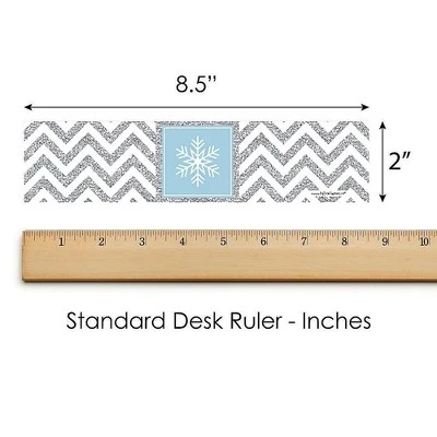 Winter Wonderland Water Bottle Sticker Labels INCLUDES 20 DIY water bottle labels. Winter Wonderland DIY party supplies are perfect for quickly dressing up any beverage bottle in your party theme. Water bottle stickers each SIZE 8.5″ wide x 2″ tall, perfect for any beverage bottle or container less than 8.5″ in diameter. EASY TO USE: Prepare your water bottles or containers by ensuring they are room temperature and dry. Removing the original bottle label is preferred but not necessary. Carefully peel one snowflake sticker label from the backing and adhere to a bottle, starting at the middle and pressing toward edge. Smooth label around container and chill your beverages if needed. HIGH QUALITY PARTY SUPPLIES: Winter Wonderland water bottle labels are professionally printed on a sticker paper with a glossy coating. They are waterproof and can be used on beverages that will be chilled, just be sure to apply prior to chilling. Add them to a winter wedding, bridal shower, baby shower, birthday party beverage bar for an impressive, coordinated display. UNIQUE BEVERAGE BAR: Winter Wonderland Water Bottle Labels will make coordinated beverage area at winter wedding, bridal shower, baby shower, birthday party. Add Winter Wonderland Water Bottle Labels to standard water bottles, mini water bottles, soda bottles and single-serving juice containers. Water bottle labels can also be used on cylinder containers to create Winter Wonderland centerpieces. MADE IN THE USA: Winter Wonderland – Snowflake Holiday Party Water Bottle Sticker Labels are designed and manufactured at our Wisconsin facility using materials that are Made in America. Please Note: Beverages in image are not included. Water Bottle Labels No-Mess Glitter Print: Our beverage labels are designed with a printed image of glitter, eliminating glitter flake while maximizing bling effect!