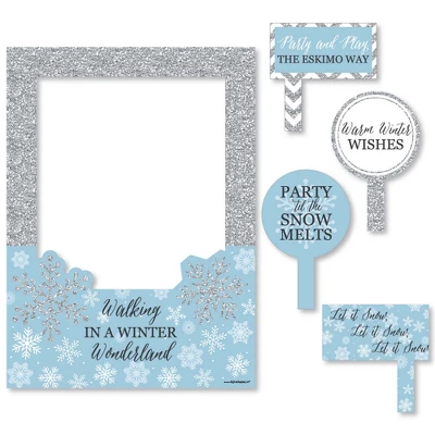 5-Piece Snowflake Holiday Photo Booth Frame and Props Kit INCLUDES 1 Winter Wonderland photo booth picture frame prop, 2 round photo booth props and 2 rectangle photo booth props – Great for a holiday party or winter wedding. Take entertaining and shareable party photos of your friends and family while making memories with funny Winter Wonderland photo booth props! PERFECT FOR ANY CROWD! Photo booth props are fun Winter Wonderland party supplies for adults and kids – everyone will love posing with cute holiday photo booth props. Photo Frame Props Kit MEASURES 17 inches x 23 inches (Picture Frame), 6 inches x 9.5 inches, including the handle (2 Round Props) and 7 inches x 7 inches, including the handle (2 Rectangle Props). WINTER WONDERLAND DECORATIONS: There are many fun ways to use these Christmas photo booth picture frame props! Style a cute photo booth with a coordinating backdrop for perfect selfies; display photo props around your event for different photo stations; or carry them from guest to guest and be sure to take cute party pics with everyone! HIGH-QUALITY PARTY SUPPLIES: Winter Wonderland photo booth props are professionally printed on durable, corrugated plastic. They will arrive cut out and ready to use. Snowflake Holiday Photo Booth Picture Frame & Props are waterproof and can be used outdoors, in any weather and at any location. MADE IN THE USA: Winter Wonderland Selfie Photo Booth Picture Frame & Props are designed and manufactured at our Wisconsin facility using materials that are Made in the USA.