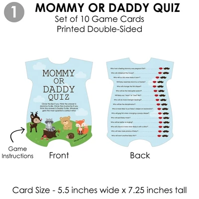 Woodland Creatures Gamerific Bundle INCLUDES 4 baby shower games with 10 game cards per each game. BABY SHOWER GAMES: Guests will have fun playing 4 different baby shower games: Mommy or Daddy Quiz, Who Knows Mommy Best, What’s in Your Purse, and Oh Baby! Each game is shaped like popular baby items: baby bodysuit, diaper, baby rattle, and baby bottle. HOW TO PLAY: Each game card is printed with easy-to-follow game instructions. For added fun, make each game extra competitive by adding a time limit and offering a prize to the winning party guest. HIGH-QUALITY: Woodland Creatures Baby Shower Games are professionally printed and double-sided on sturdy cardstock paper. They are individually inspected and carefully packaged by hand. This fun baby shower game set will arrive ready to play. MADE IN THE USA: Woodland Creatures Baby Shower Gamerific Bundle is designed and manufactured at our Wisconsin facility using materials that are Made in the USA.