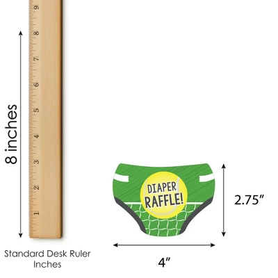 You Got Served – Tennis – Sports Diaper Shaped Raffle Ticket Inserts INCLUDES 24 cards with instructions for a diaper raffle game and space for guests to write their name. FUN BABY SHOWER GAME: Baby Shower guests will love playing a diaper raffle – it’s easy to do and helps Mommy-to-Be stock up on diapers before her baby arrives. Diaper raffle tickets are a great addition to any baby shower invitations. Add them to invites for traditional baby shower or a baby sprinkle, give them to Dad’s friends for a diaper party, or host an event with coworkers. HOW TO PLAY: Add a Diaper Raffle Ticket to each baby shower invitation, telling guests to bring one package of diapers and the Diaper Raffle Ticket with their name on it. At the baby shower, have a fun basket or box at the gift table and direct guests to drop their Diaper Raffle Tickets into it. Give your guests ample time to arrive and then have a drawing for the prize winner. You can have one grand prize winner or numerous little ones. Either way, a diaper raffle is a fun way to get everyone in on the games and an easy way to get the parents ready for baby! HIGH-QUALITY PARTY SUPPLIES: Diaper Shaped Raffle Ticket Inserts are professionally printed on heavy-duty cardstock paper with a photo-like shine. They are individually inspected and carefully packaged by hand. This fun baby shower or gender reveal party game will arrive ready to use at your party. Each diaper shaped raffle ticket measures 4” wide x 2.75” tall. MADE IN THE USA: You Got Served – Tennis – Diaper Shaped Raffle Ticket Inserts – Baby Shower Game is designed and manufactured at our Wisconsin facility using materials that are Made in the USA.