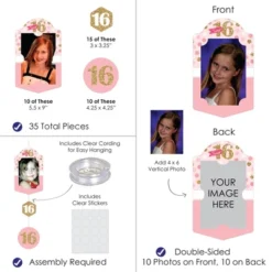 Big Dot Of Happiness Sweet 16 – 16th Birthday Party Vertical Photo Garland 35 Pieces