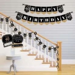 Big Dot Of Happiness Adult 40th Birthday – Gold – Birthday Party Vertical Photo Garland 35 Pieces