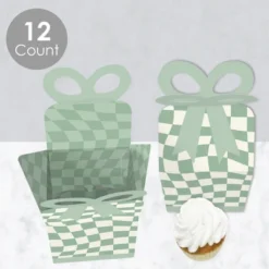 Big Dot Of Happiness Sage Green Checkered Party – Square Favor Gift Boxes – Bow Boxes – Set Of 12